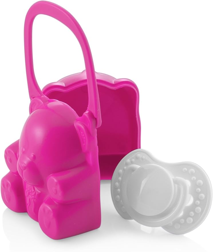 ingenious pink color teddy bear pacifier comes handy when your baby still wants to suck after she has had her fill of formula or breast milk. It is made of superior quality polypropylene keeping babies health and hygiene in mind. Thanks to its flexible handle, you can hang and unhang the peacekeeper from the pram whenever you like, very easily. Product Features:The little ones love its friendly little bear design so they will want to take it everywhere It also complies with toy safety standards Dishwasher safe 100% phthalate-free